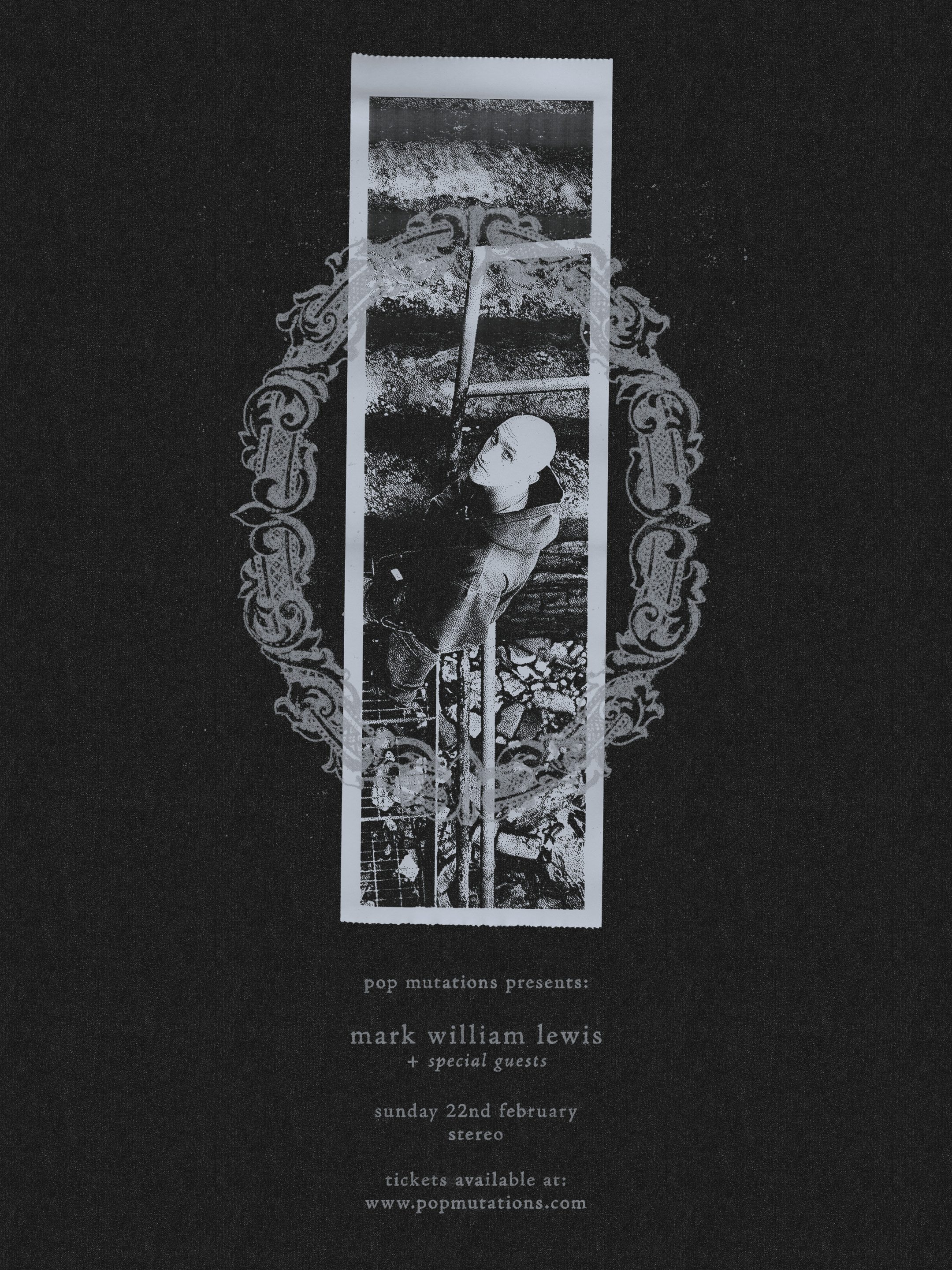 Pop Mutations presents: mark william lewis + Alba Akvama Sunday 22nd February Stereo 18+ Mark William Lewis is an artist that exists between the cracks. He eschews easy genre categorisation, plays with the traditional conventions of a songwriter, and creates music that is poetic
