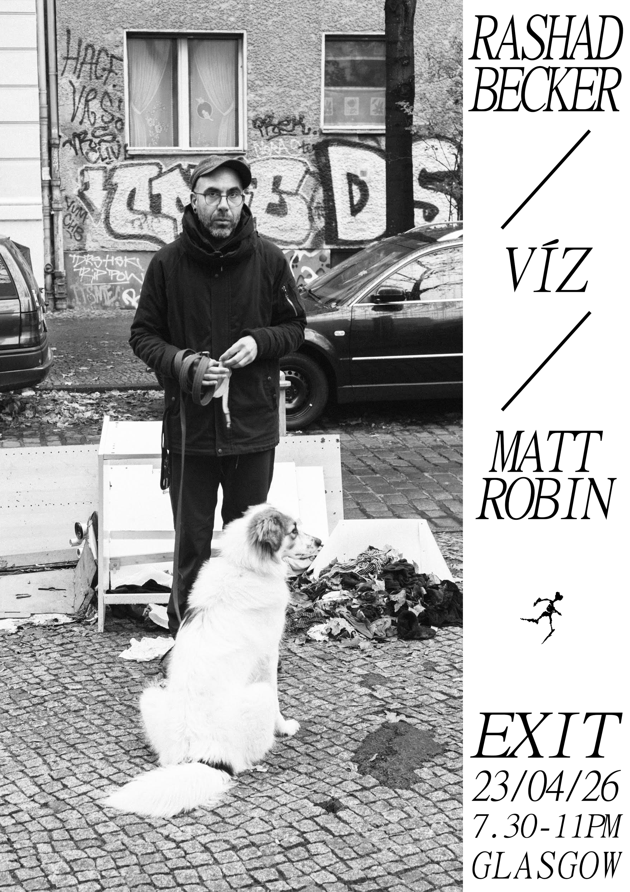EXIT presents a special midweek Thursday show featuring pioneering Berlin-based composer, sound artist, and mastering engineer Rashad Becker. Joining him is the project of Hungarian Transylvanian vocalist and performer Réka Csiszér, known as VÍZ, alongside Glasgow's Matt Robin.