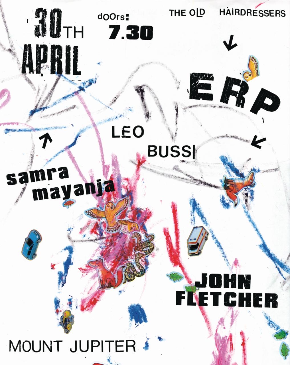 ERP takeover programmed by Caitlin Merrett King and Myriam Mouflih. Acts: Leo Bussi John Fletcher Mount Jupiter Samra Mayanja Free for all ERP members / £7 OTD