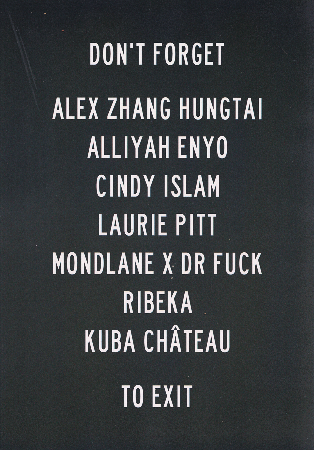 DON'T FORGET TO EXIT £5 LOW INCOME / UNWAGED / UC £7.50 EARLY BIRD £10 GENERAL ADMISSION