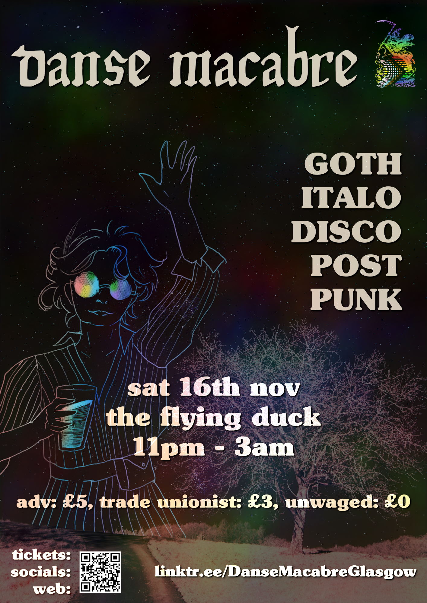 GOTH / ITALO / POST-PUNK / DISCO / SYNTH Queer goth disco since 2010, £5 advance or £3 trade unionist (£7/5 OTD), free if unwaged. Venue is a basement without lift. Gender-neutral toilets. DJs should have spare earplugs and masks, please take an LFT before coming.