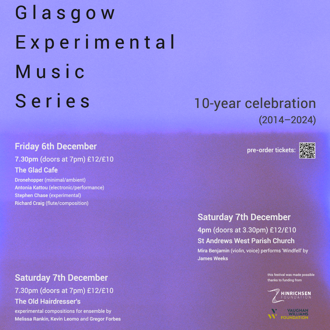 Glasgow Experimental Music Series 10th Anniversary gig at The Old Hairdresser's. £10/£12/PWYC OTD