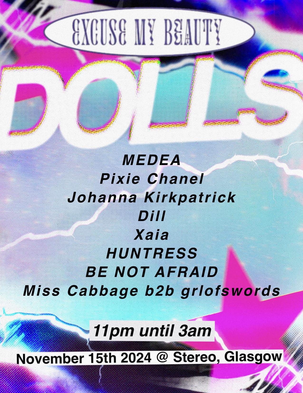 Excuse My Beauty - DOLLS! DOLLS! DOLLS!: Miss Cabbage b2b grlofswords, HUNTRESS, BE NOT AFRAID, Xaia, Medea, Pixie, and more TBA