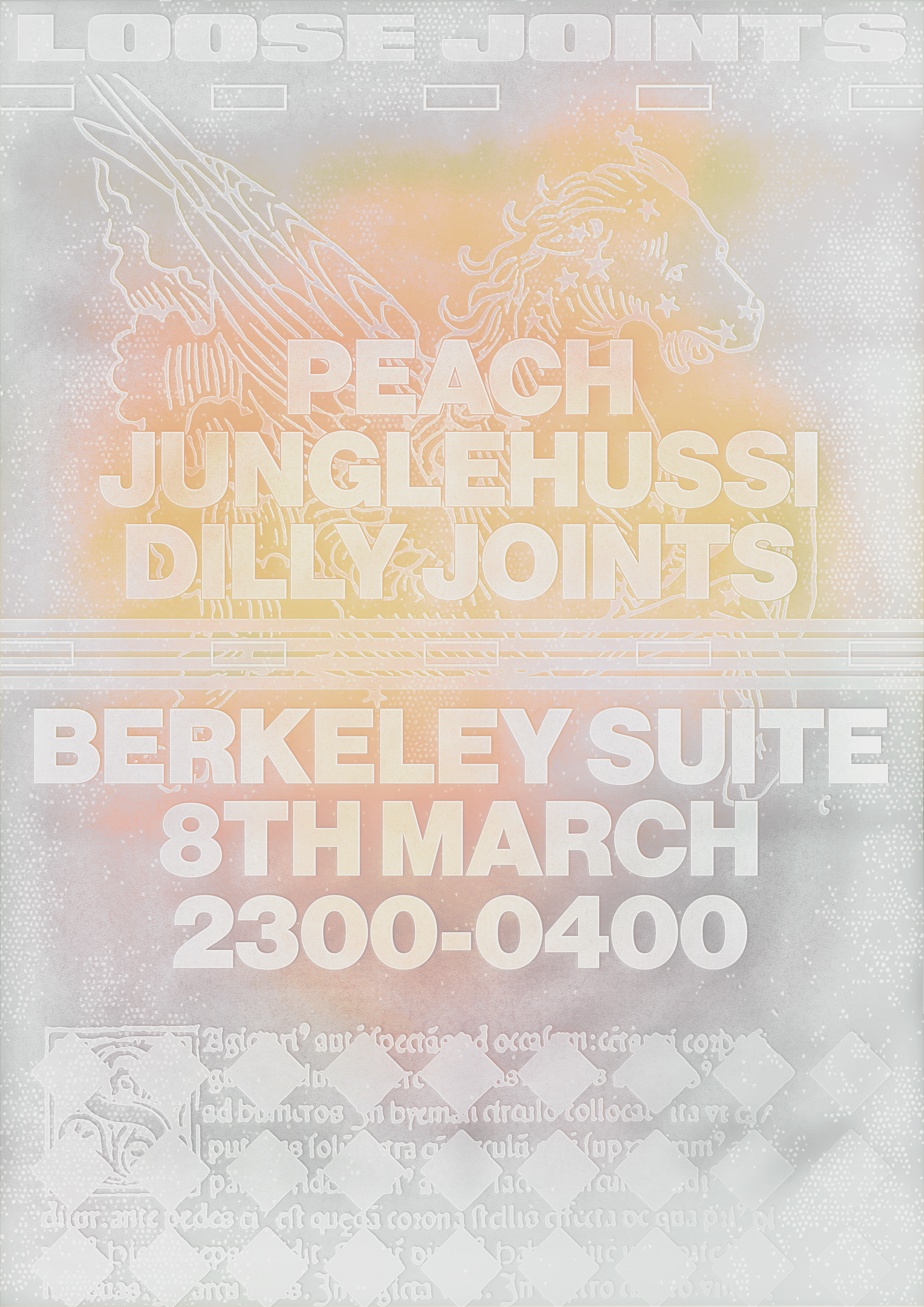 We return to The Berkeley Suite for our first party of 2025. This time two fabled guests- a Berkeley Suite debut for Peach, and a return for Glasgow's much cherished Junglehussi. Dilly on the warmup. Tickets £13/£16