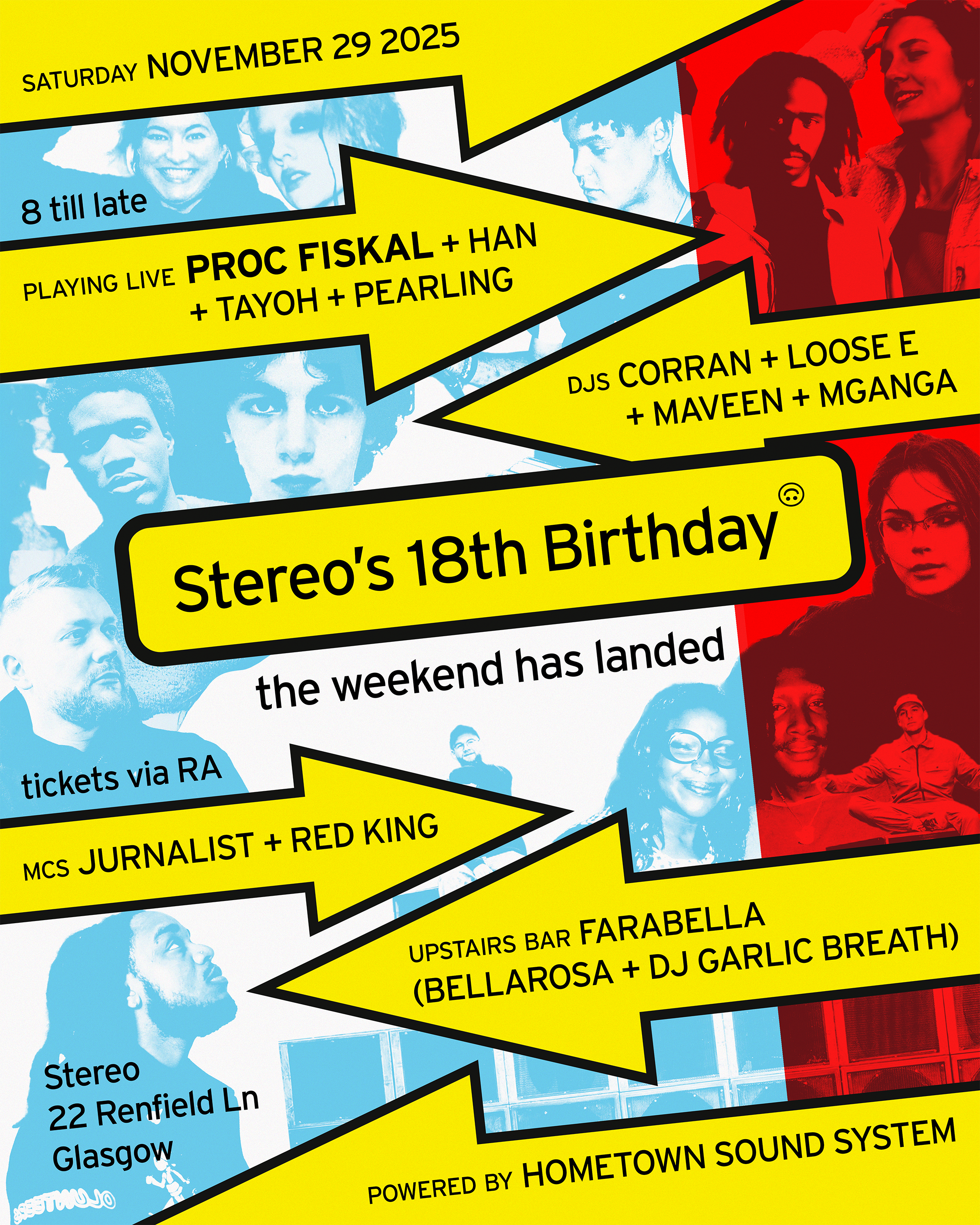 the weekend IS LANDING and all roads lead to Stereo, as we turn 18 years old! since 2007, we’ve been cooking up some delicious vegan scran and hosted countless bands, DJs, performers, dancers, artists, club nights, cabarets, workshops, you name it. sooo on 29th of November, as w