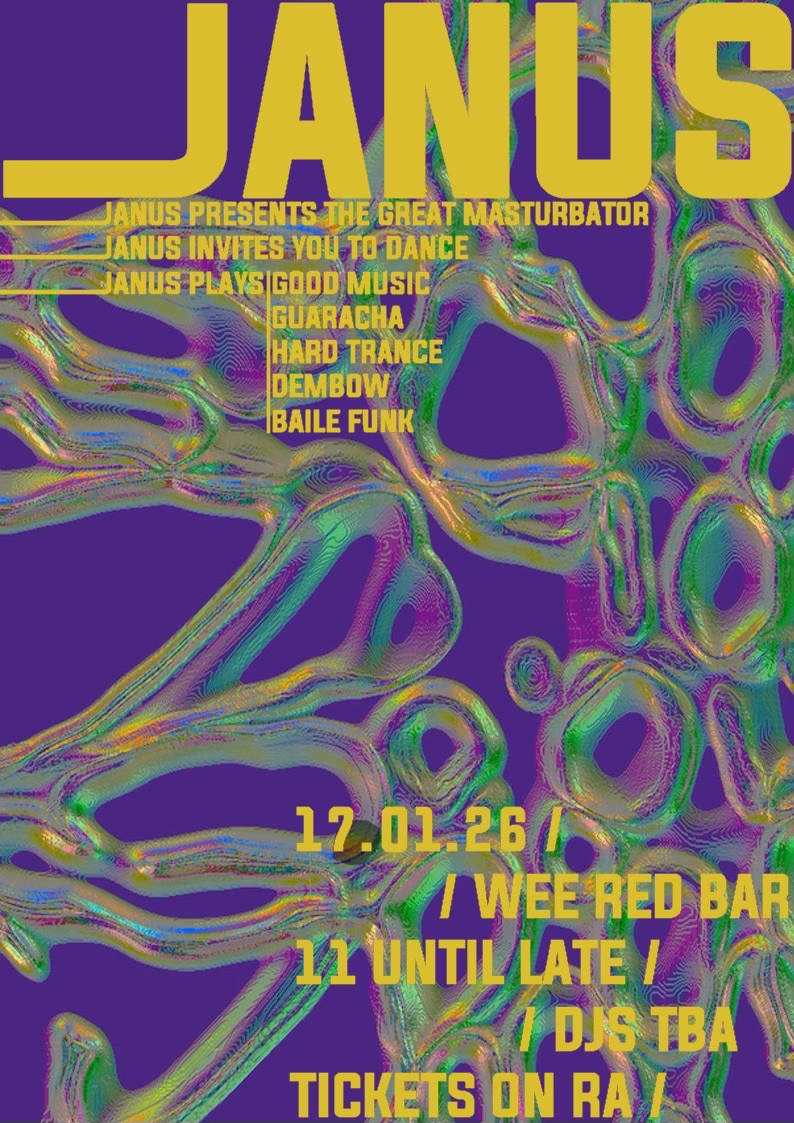 With one face looking at Edinburgh, and the other Glasgow, JANUS is a new inclusive alternative event series curated by each city's queer club scenes. Janus vol.1 - "The Face of The Great Masturbator"(Salvador Dalí) -> 17/01/2025 -> £5 Edinburgh, @ Wee Red Bar